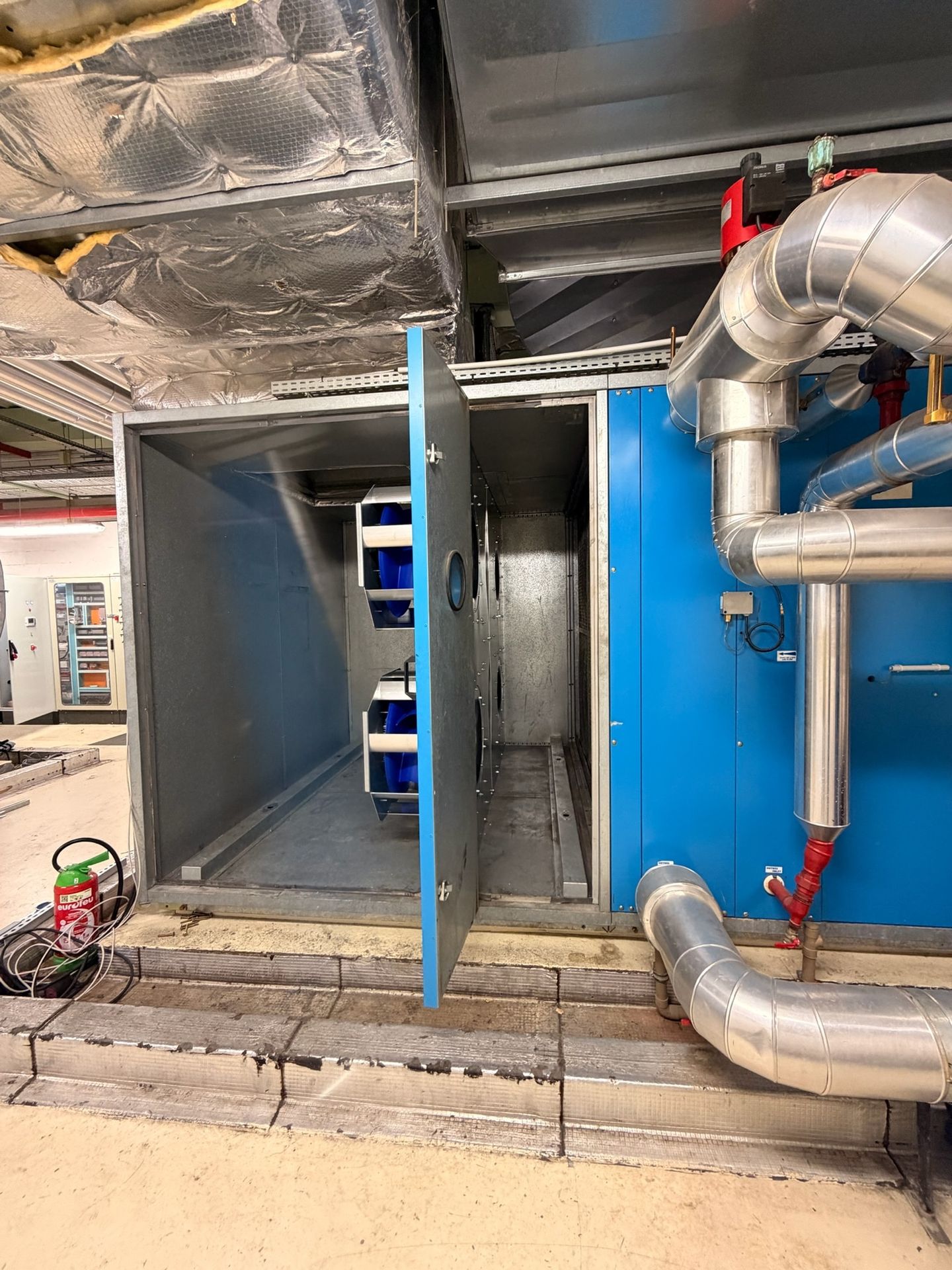Dans le cadre de l’optimisation énergétique de ses installations, notre client a confié à HDAS le retrofit de sa centrale de traitement d’air (CTA) au niveau de la ventilation. L’installation d’origine était équipée d’un ventilateur de 40 000m3/h avec un entraînement par poulies et courroies. L’objectif de l’intervention était de moderniser le système en remplaçant cette technologie par des ventilateurs à entraînement direct, plus performants et moins énergivores.